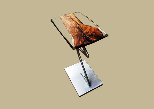 Sigma resin side table Dimensions W 35 cm ( 13,77″ ) D 45 cm ( 17,71″ ) H 61 cm ( 24″ ) Materials Walnut , Epoxy,  Resin, İronView more