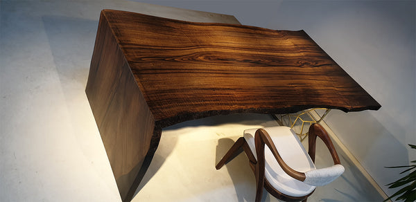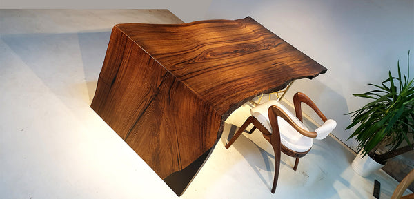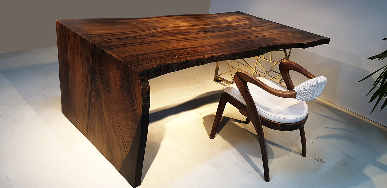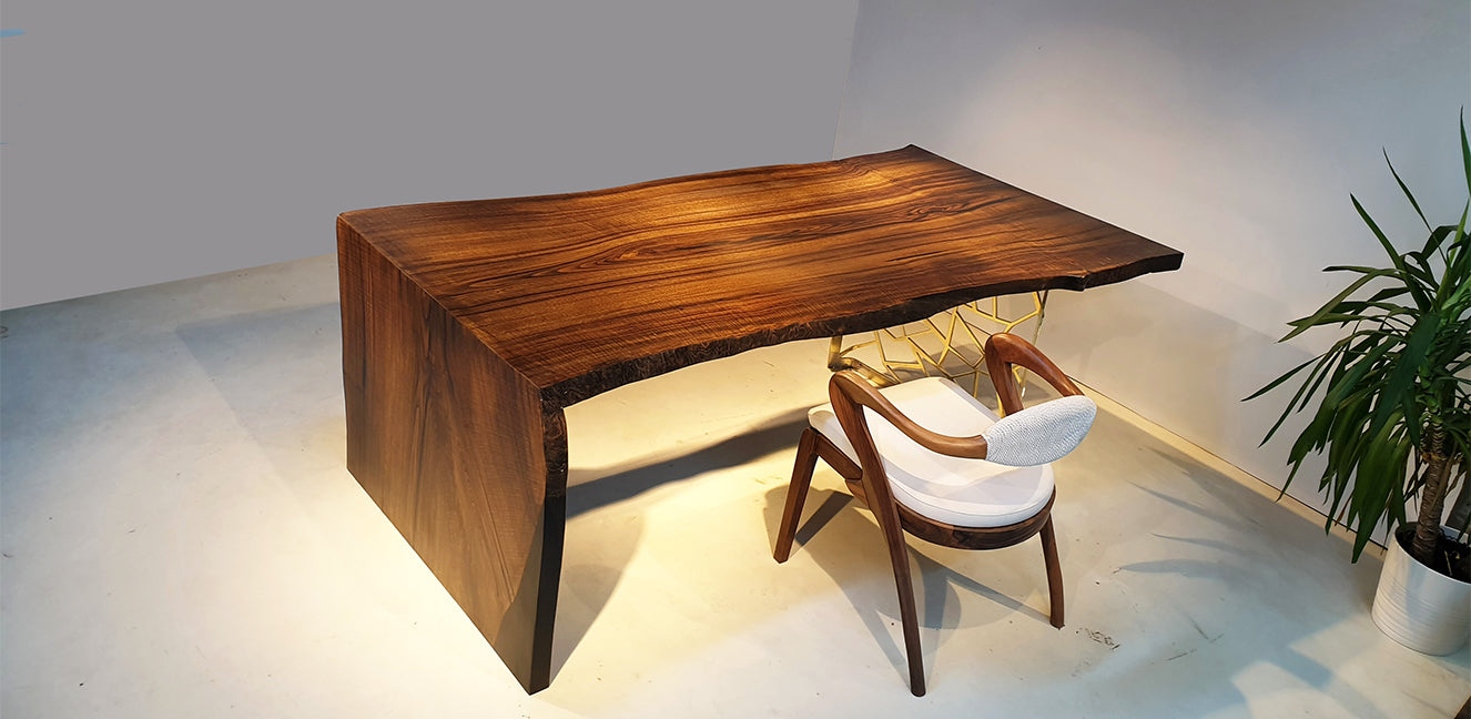 This piece made by L 330 cm x W 100/110 cm walnut slab as waterfall Desk. İt can also be use as dining table.